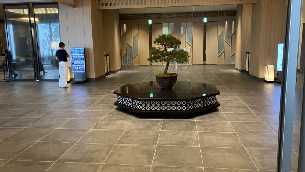 エントランスから繋がる「水盤テラス」はチェックインやチェックアウト時などのちょっとした時間に楽しめます。