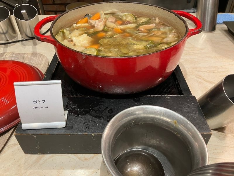ソーセージやスクランブルエッグなど定番のメニューから、ポトフや野菜のポタージュなどパンに合うメニューが充実。