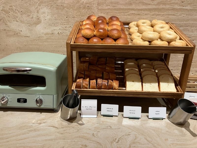 ごはん派、パン派どちらも満足できる内容です。パンはトースターで温めも可能。